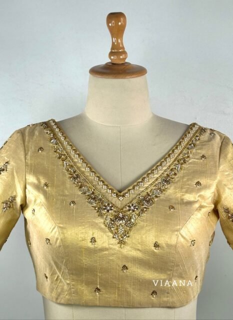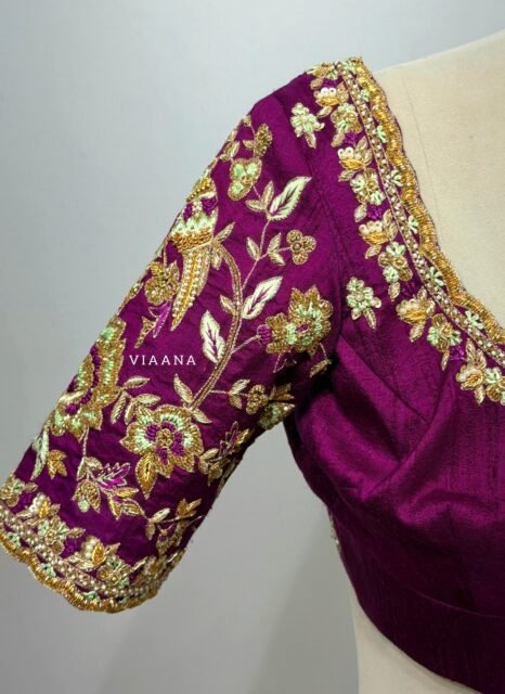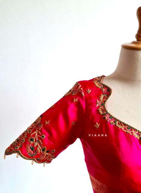 Elegant Aari Work Blouse Designs: Simple Aari Work Blouses and Stunning Wedding Outfits for Women with Aari Work Design. Best bridal blouses , handwork blouses, Muhurtham blouses & dresses for wedding only at Viaana designer Studio!! – Pin on the best 5 outfits for wedding.