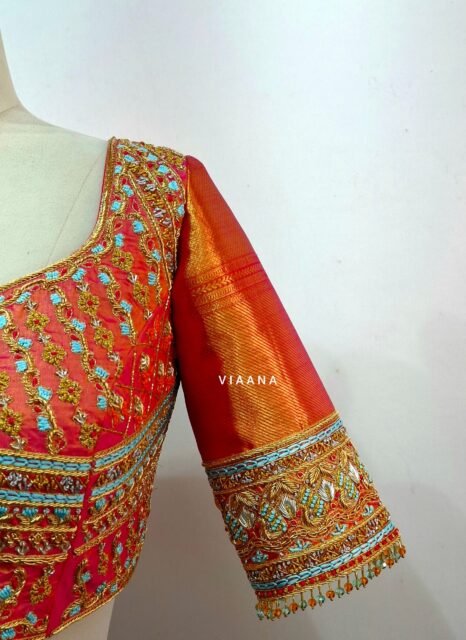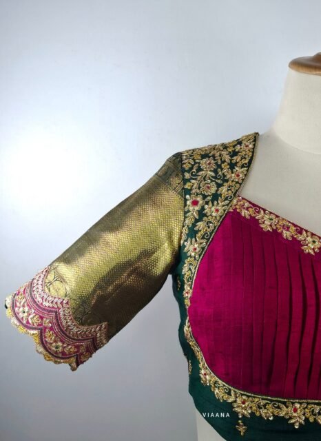 Bridal blouses featuring Maggam work and Aari work are highly sought after for their intricate designs and luxurious appeal. Maggam wor...