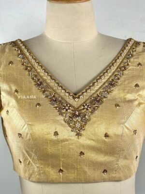 Floral thread and Zardozi embroidery with unique zari checks design on neck and sleeves with cutwork
