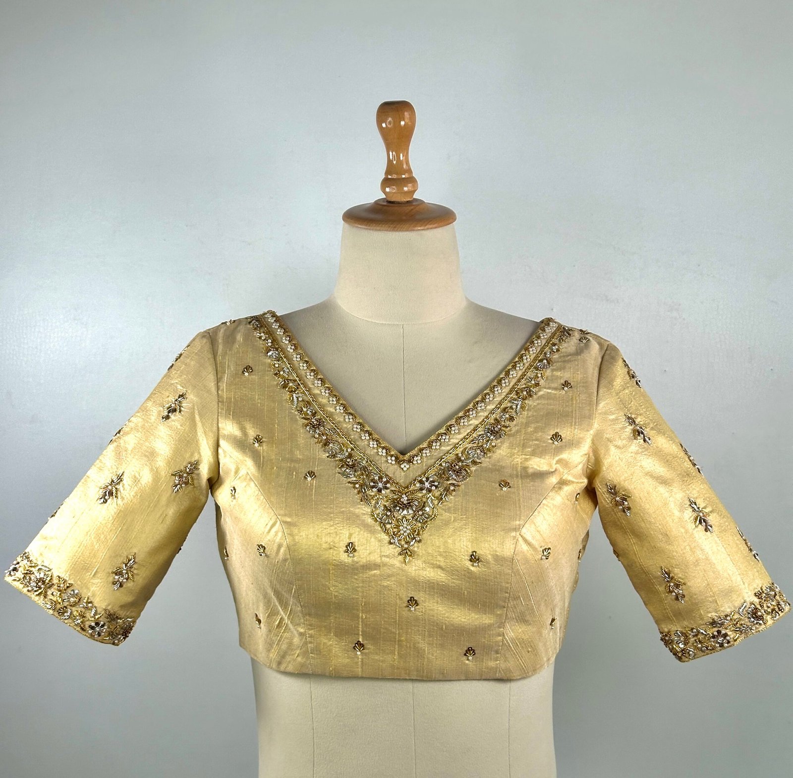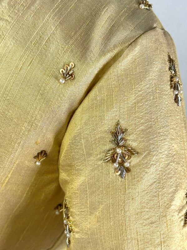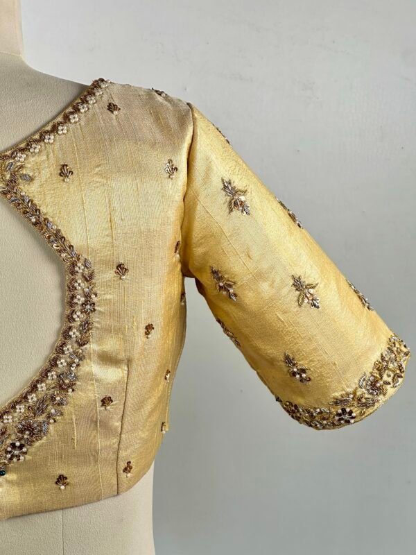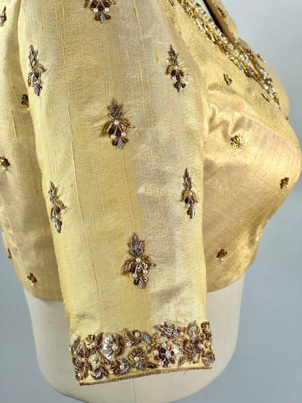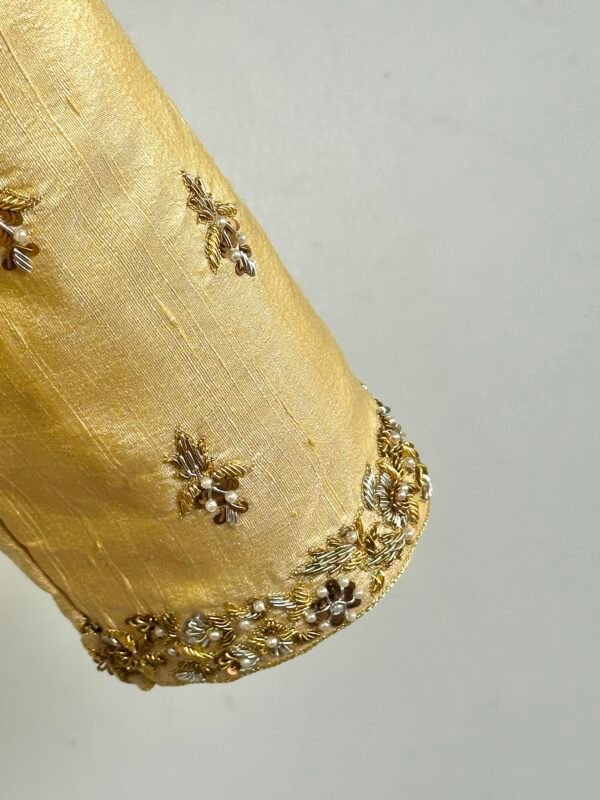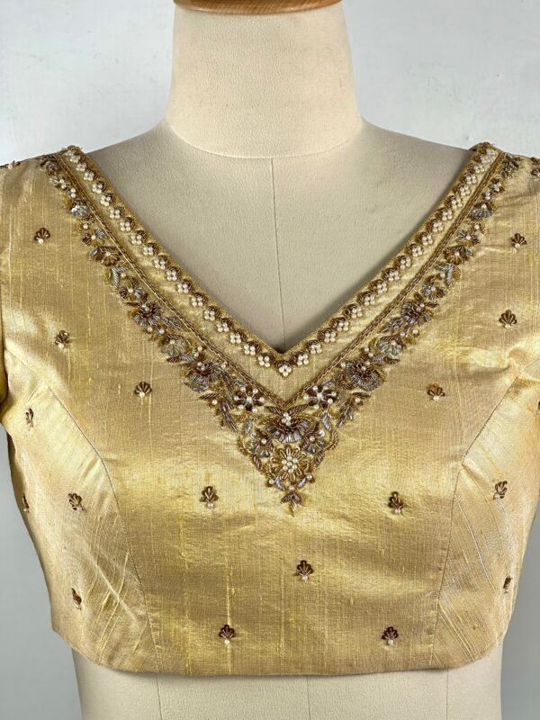 Intricate golden Zardozi embroidery handwork blouse