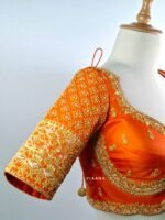 Be the first to review “Zari knot filling work with thread and Zardozi chain stitch embroidery blouse” Cancel reply
