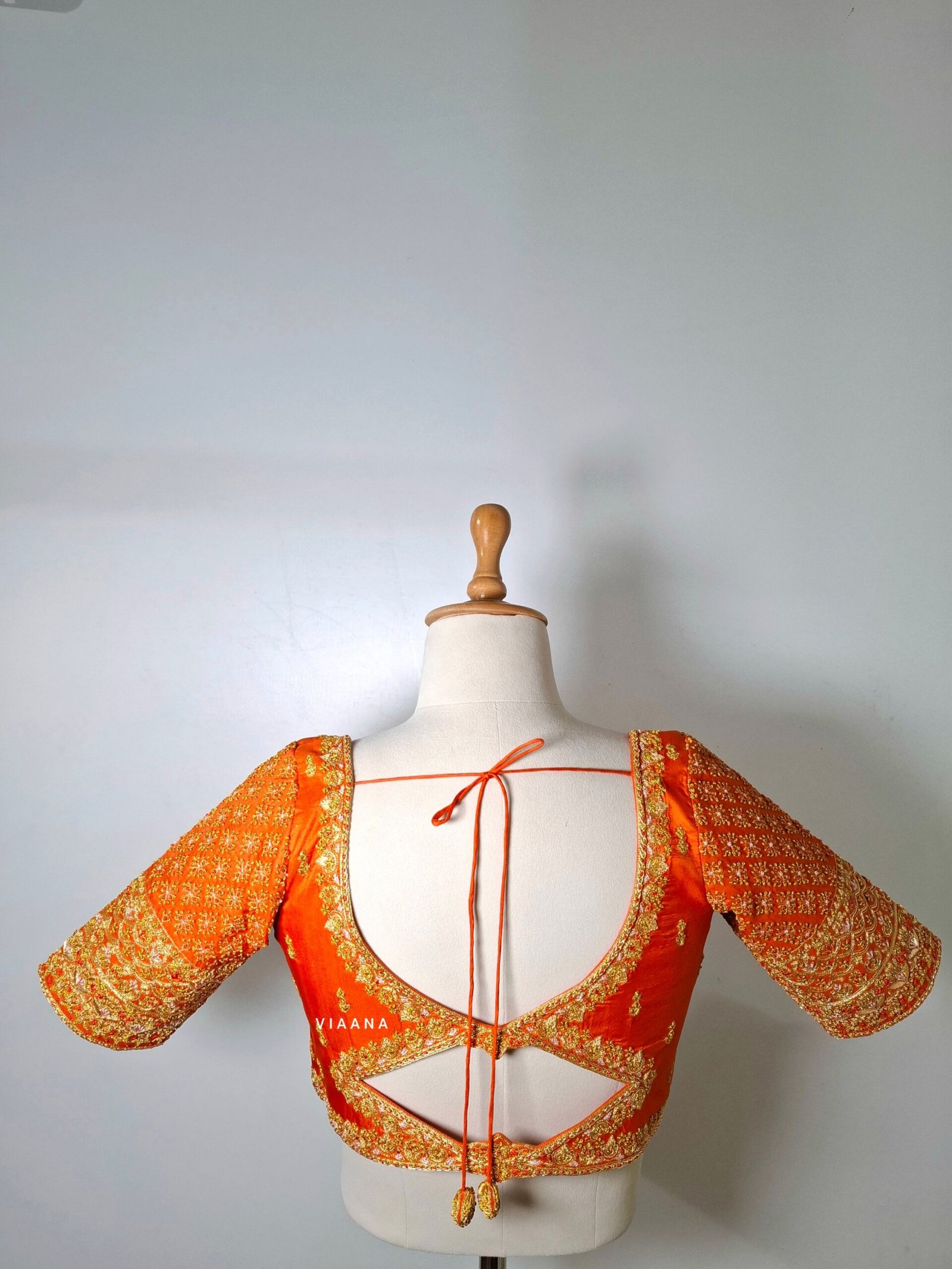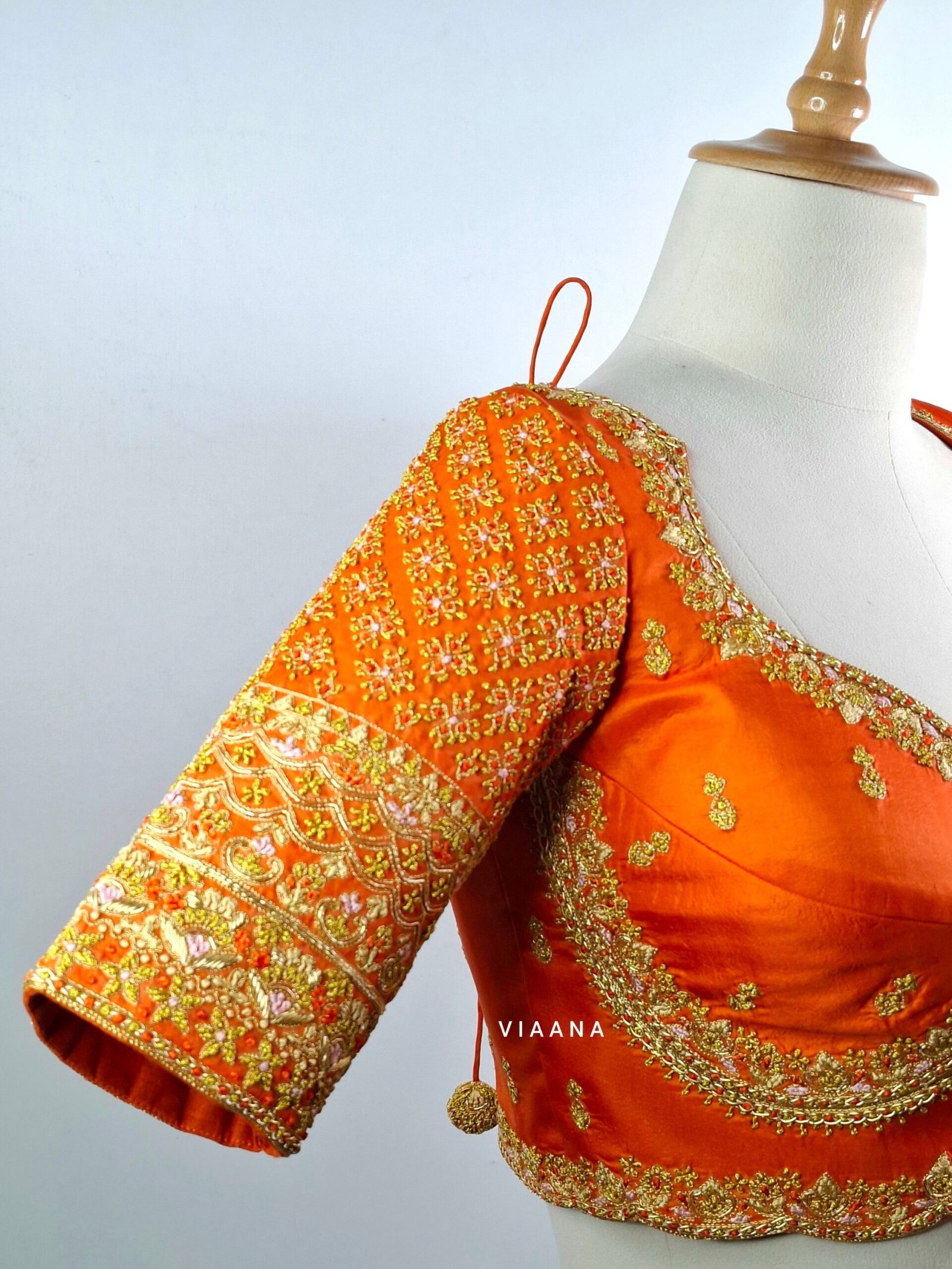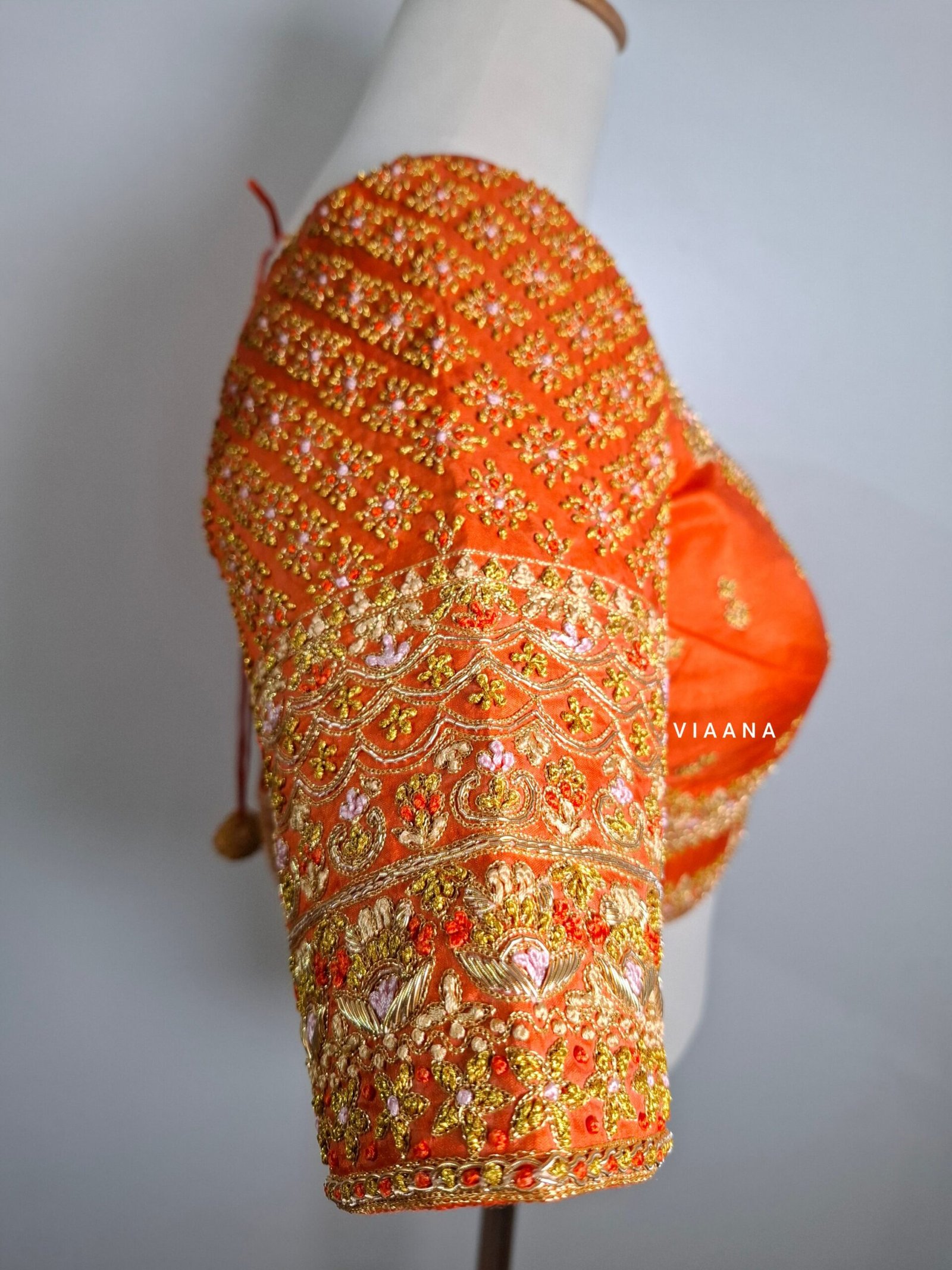 Intricate zari and threadwork with Zardozi loading line embroidery blouse