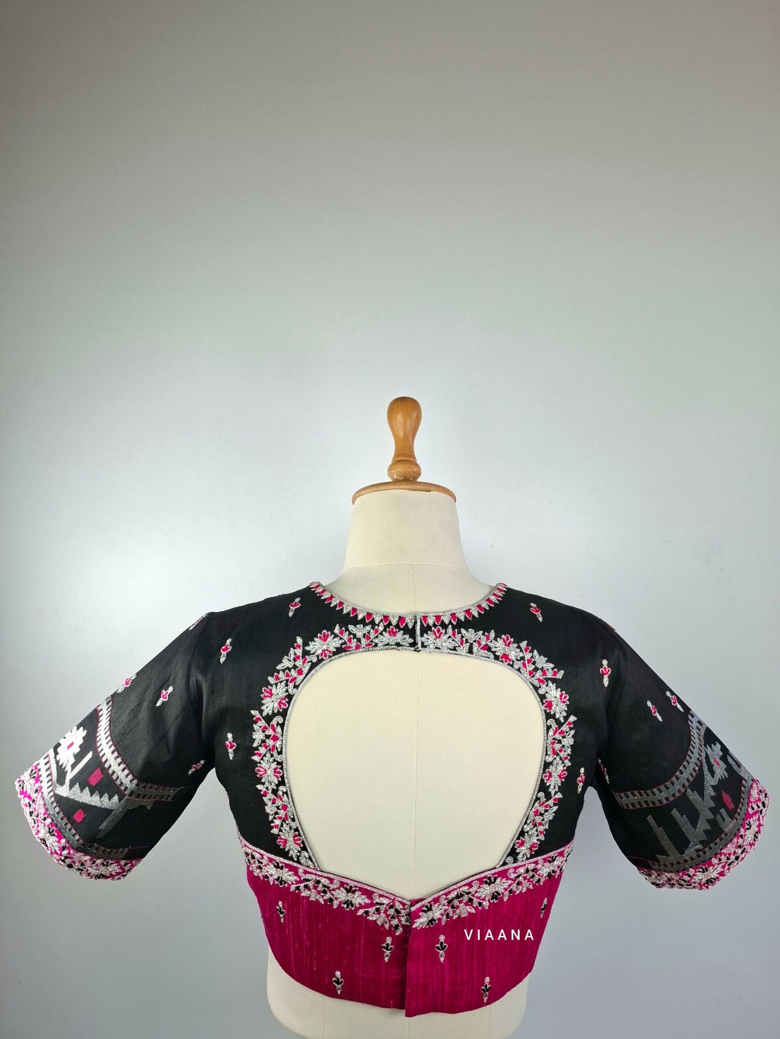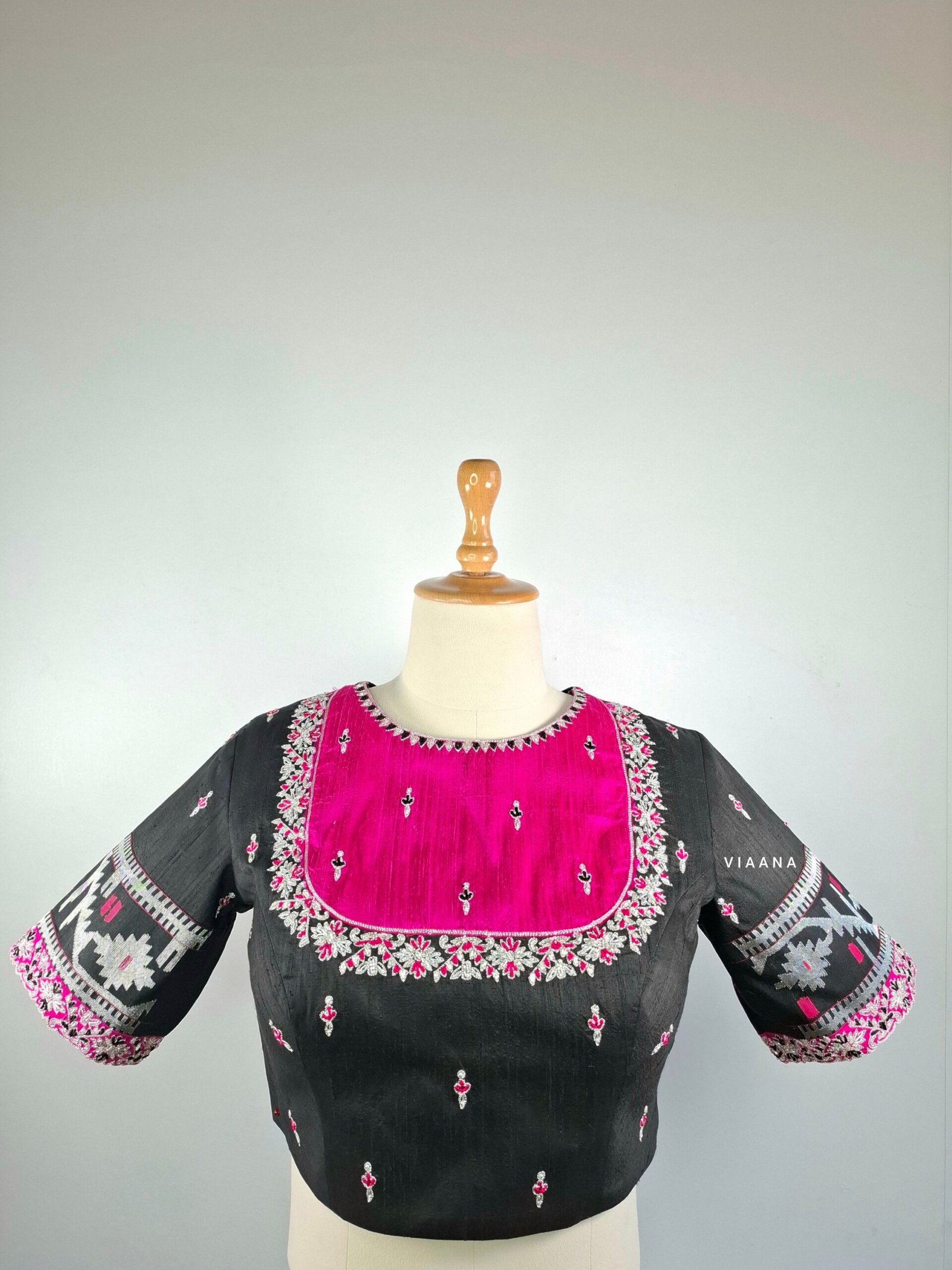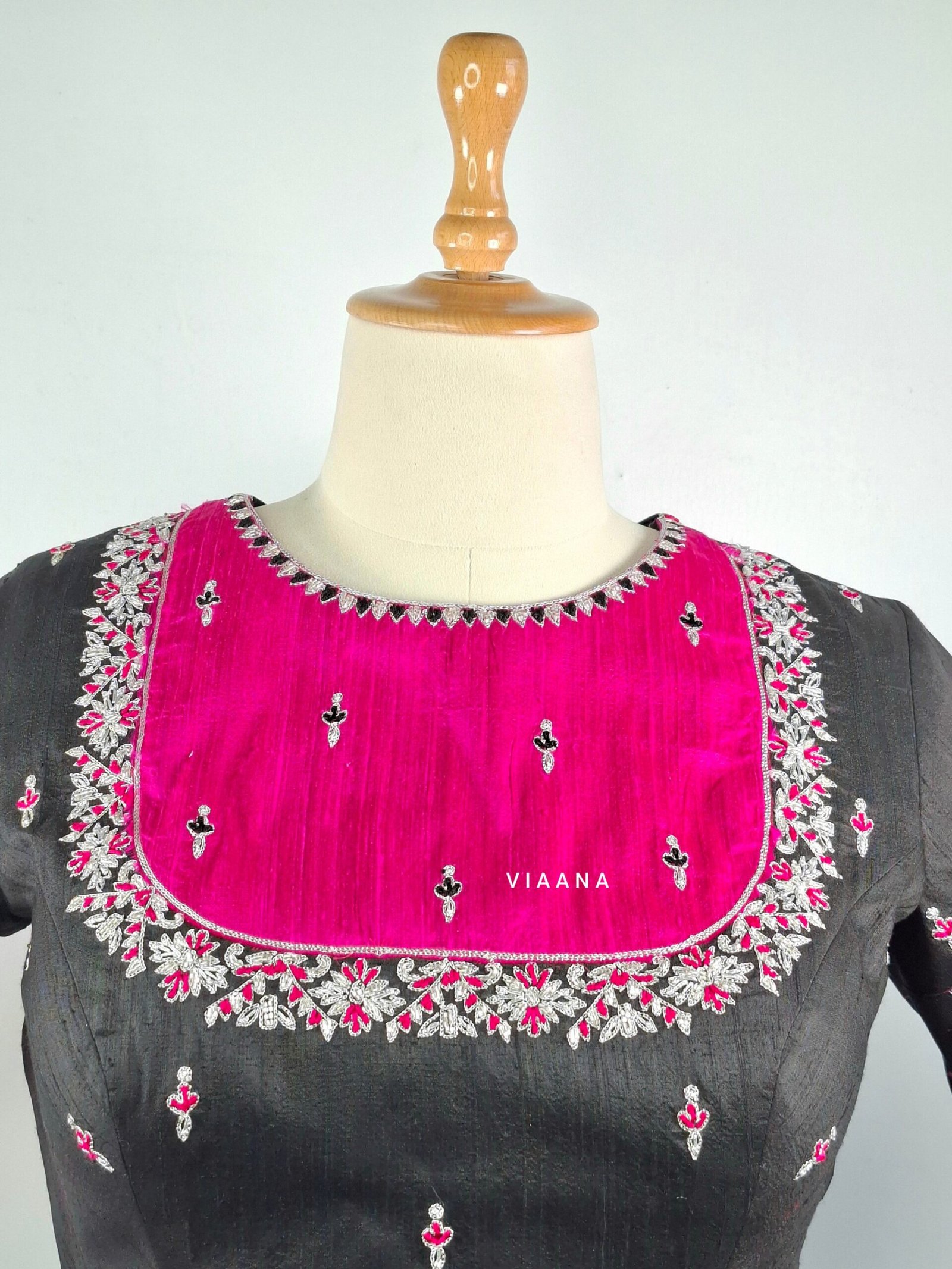 Be the first to review “Black and pink blouse embroidery made with zari, cutdana and threadwork” Cancel reply