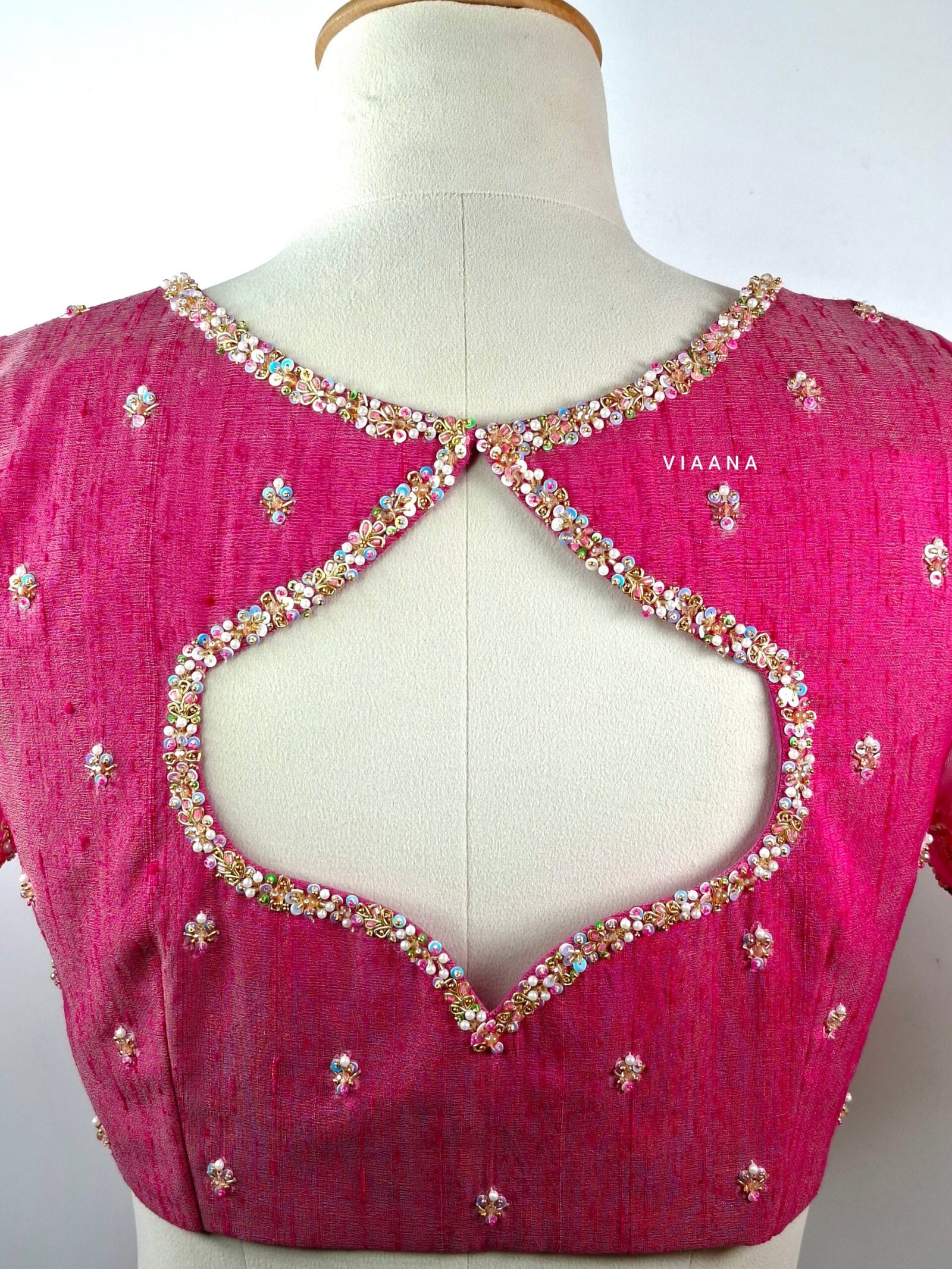 Zardozi embroidery with beads detailing blouse with butta motifs on back and sleeves