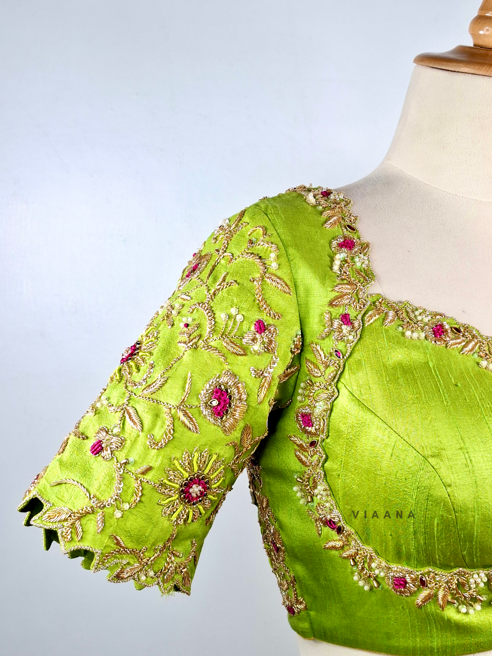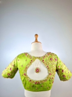 Zardozi and thread knot embroidery with lotli sleeves blouse
