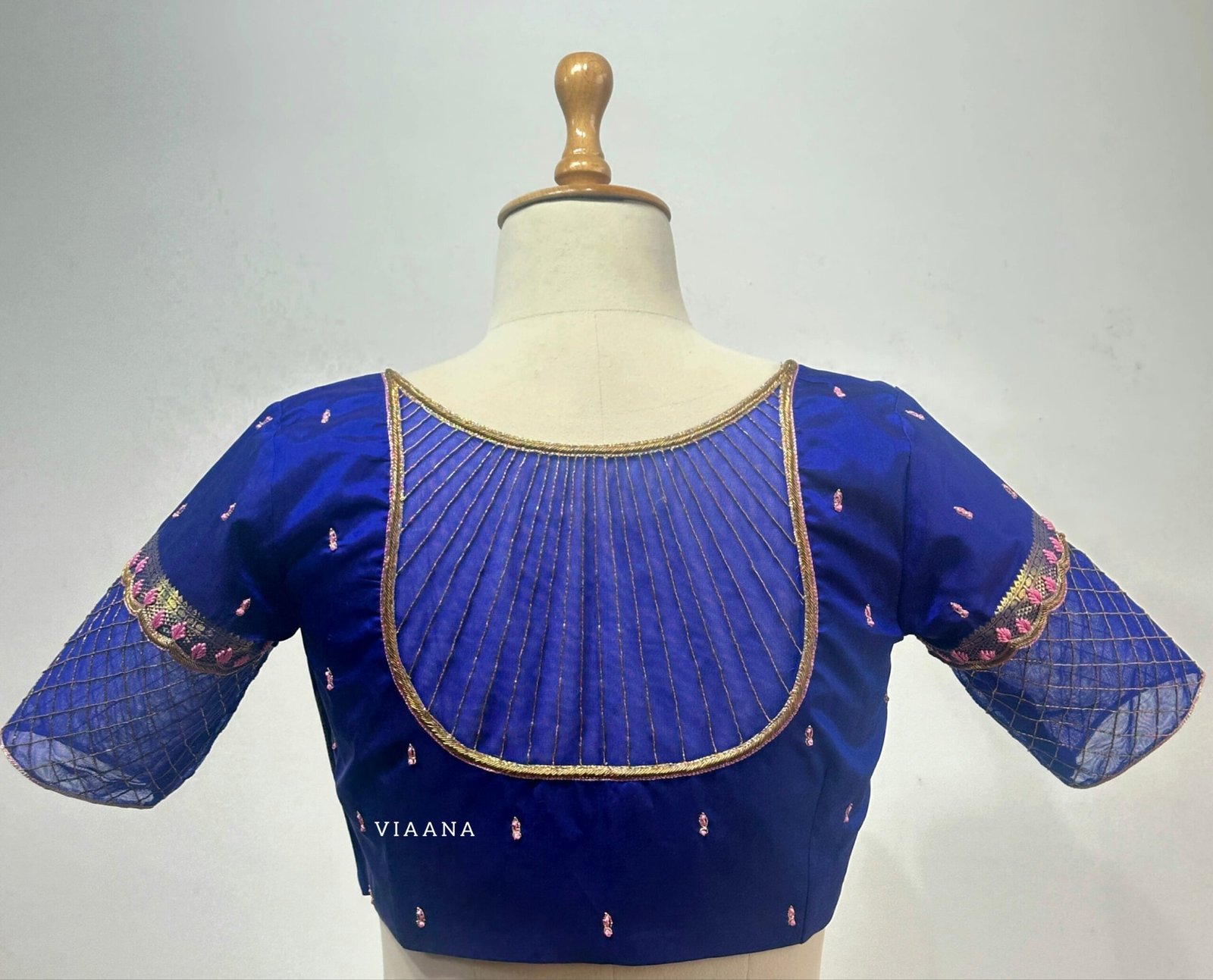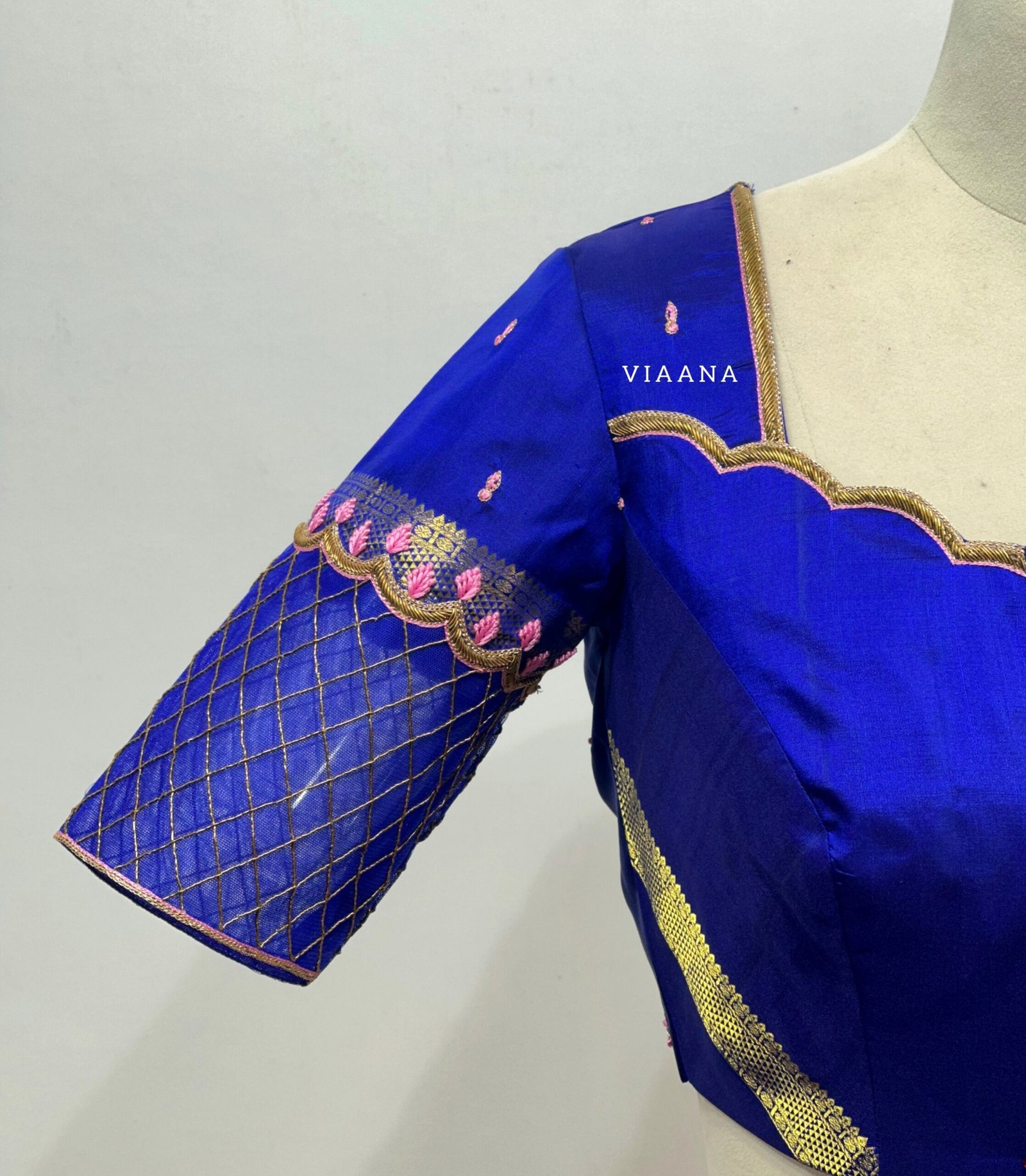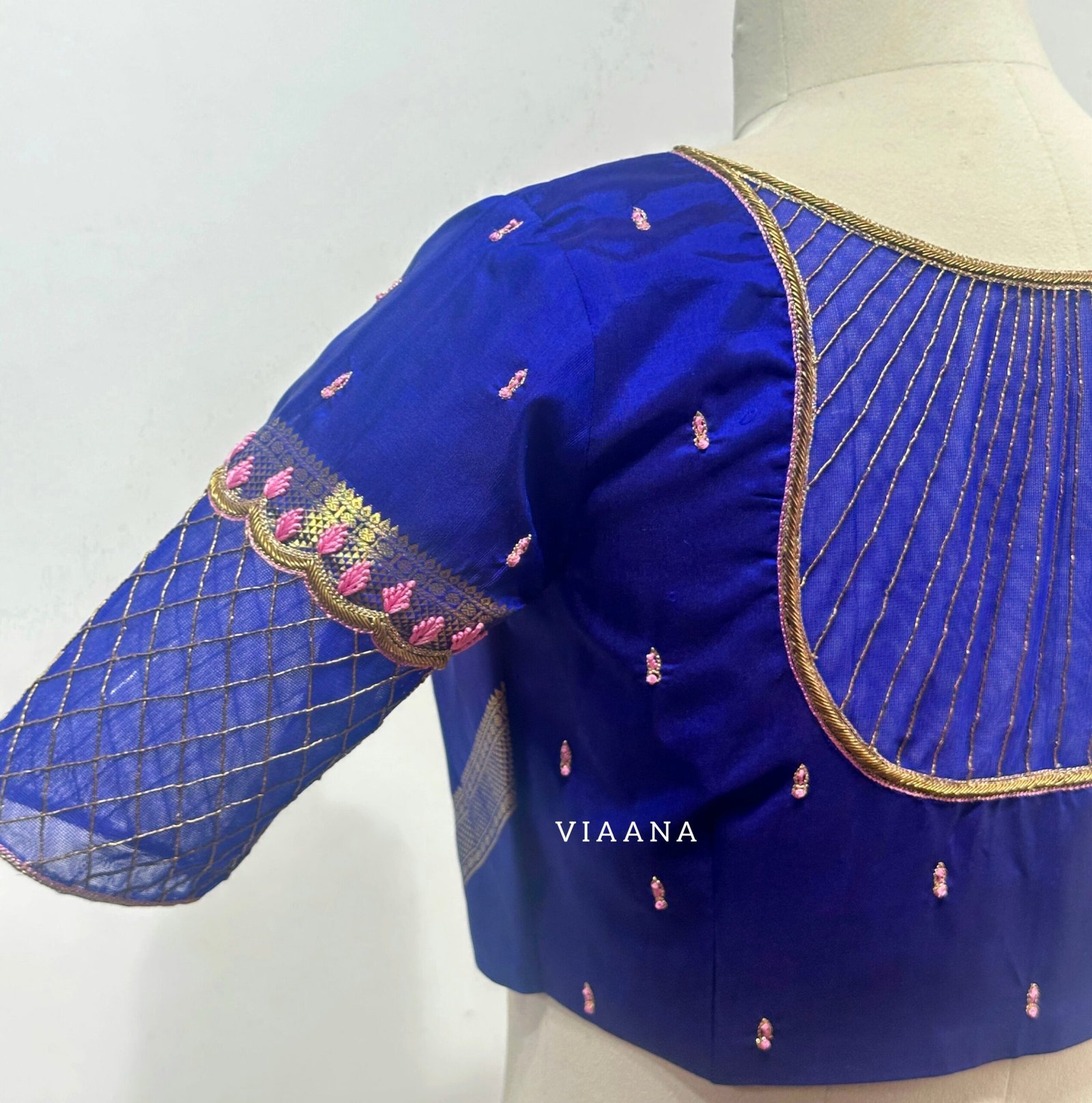 Zardozi loading line and leaf design thread work with back and net sleeves