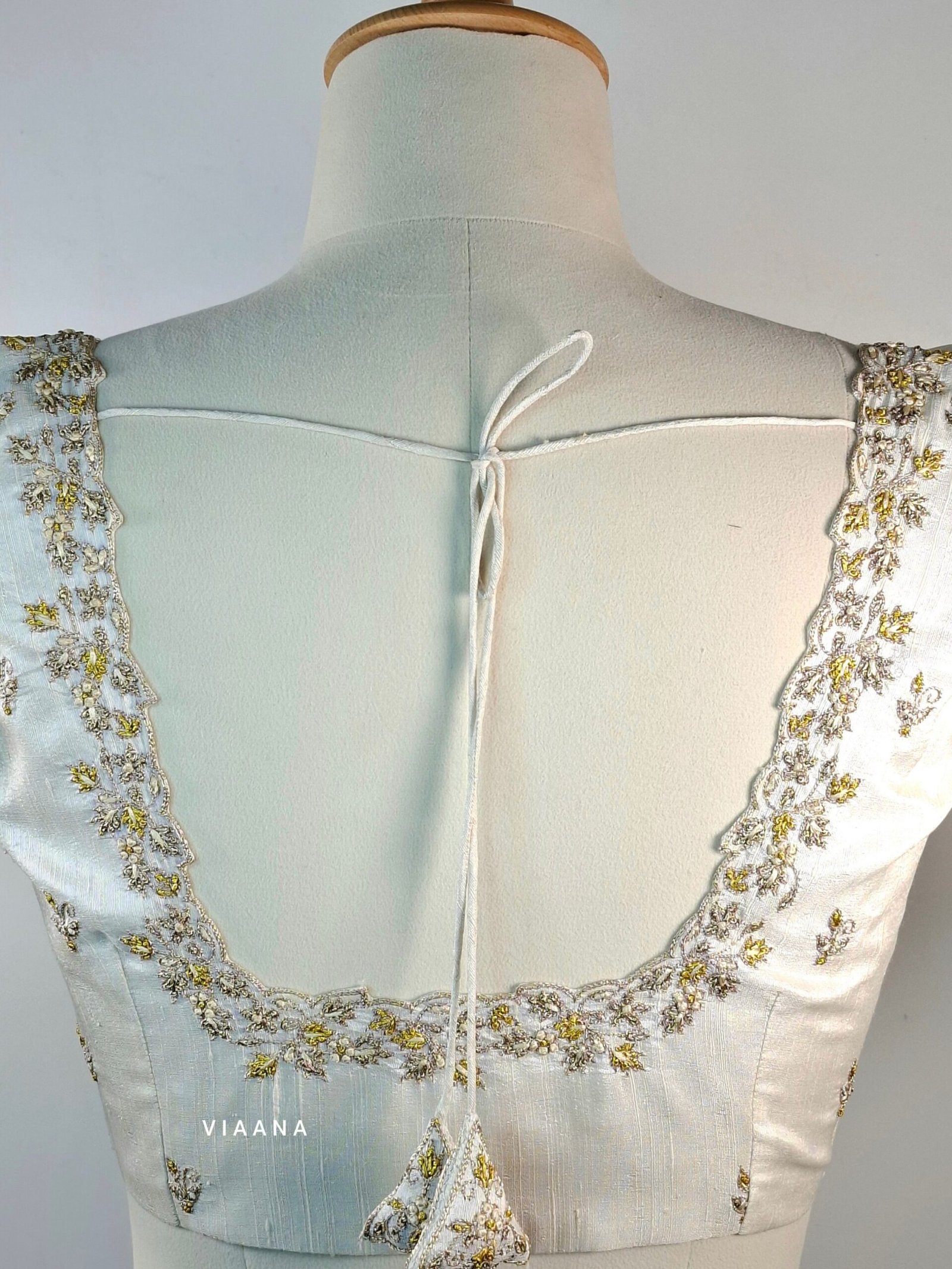 Floral zardozi and threadwork embroidery with net on back and cutwork sleeves