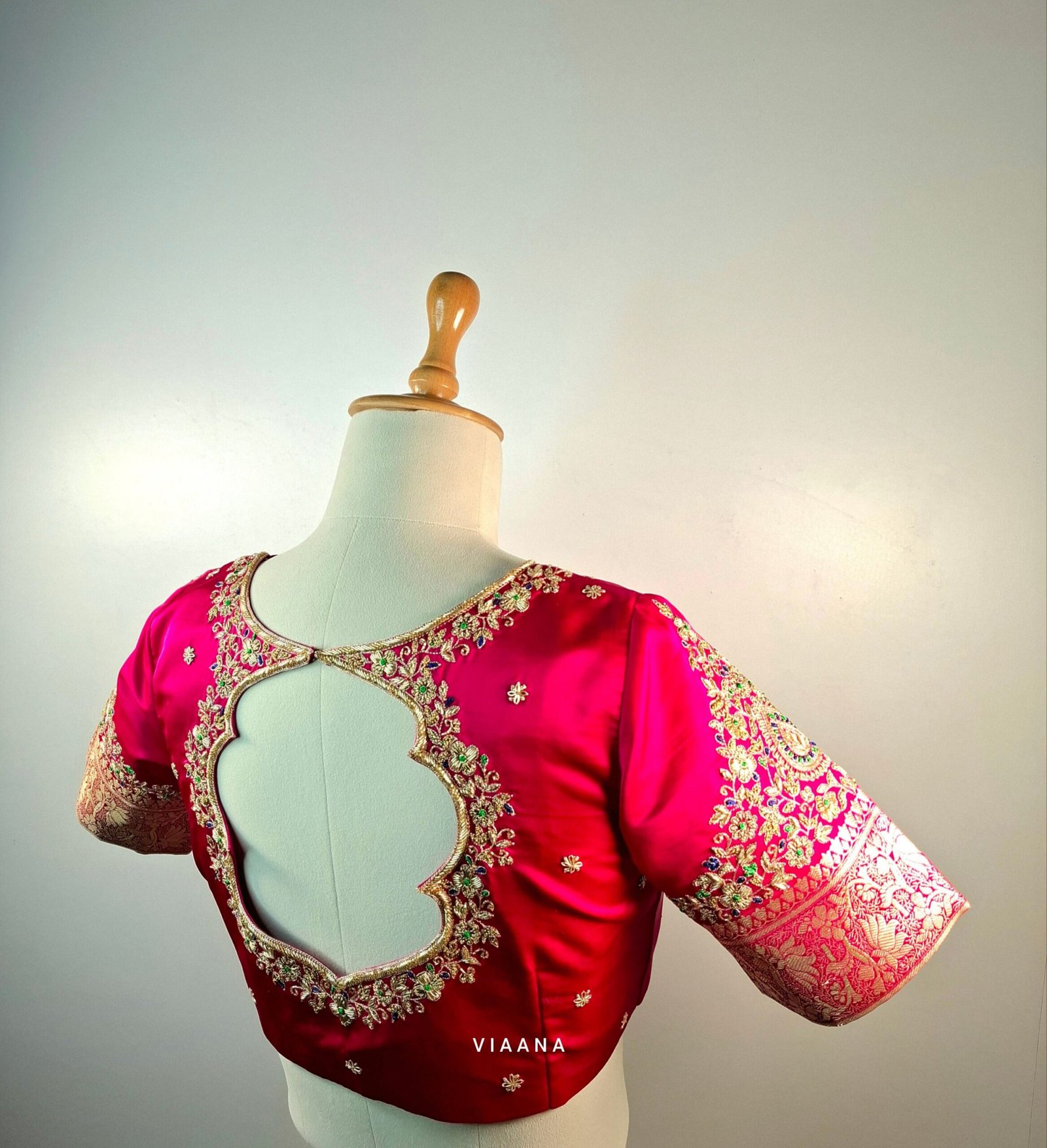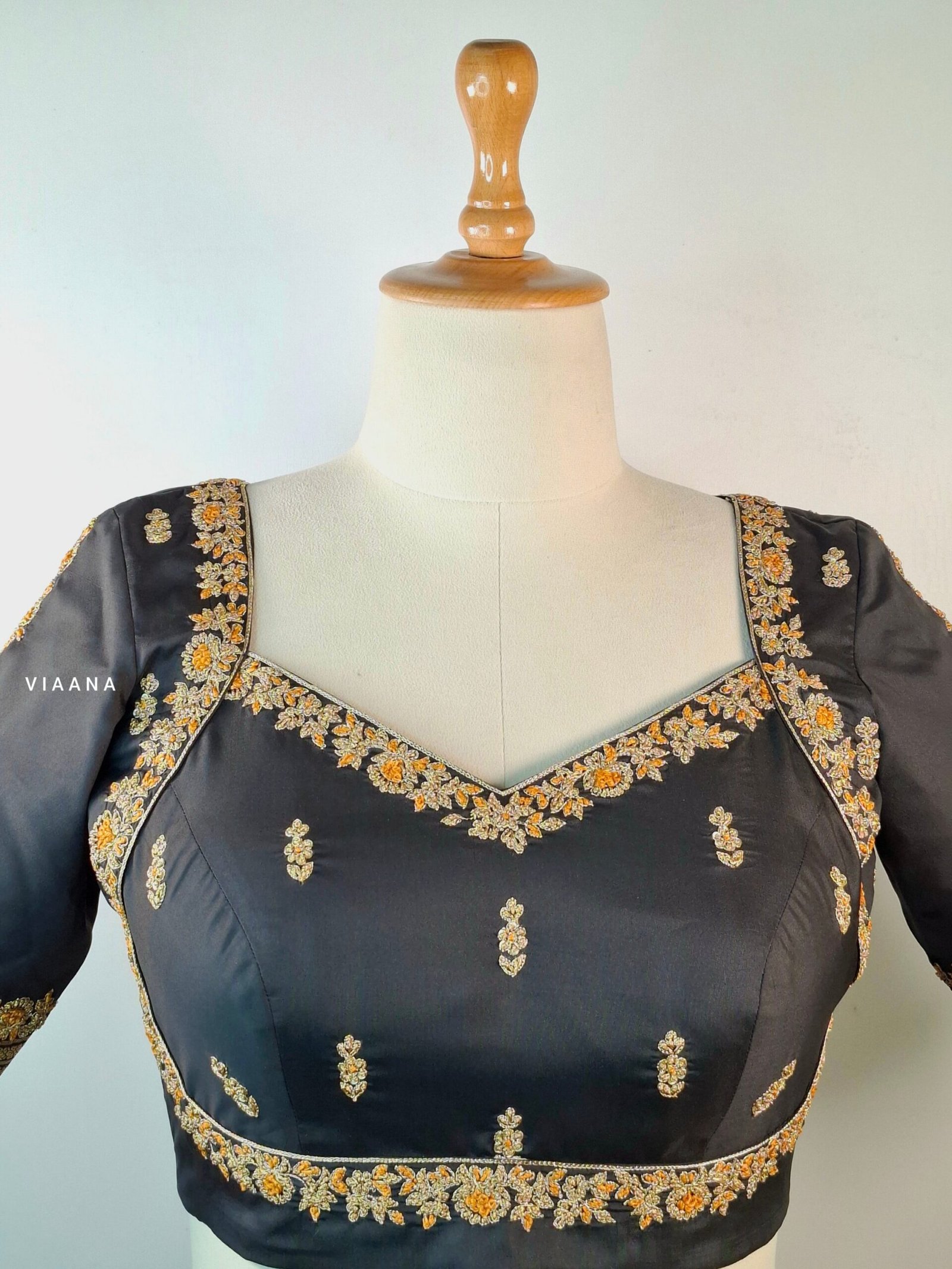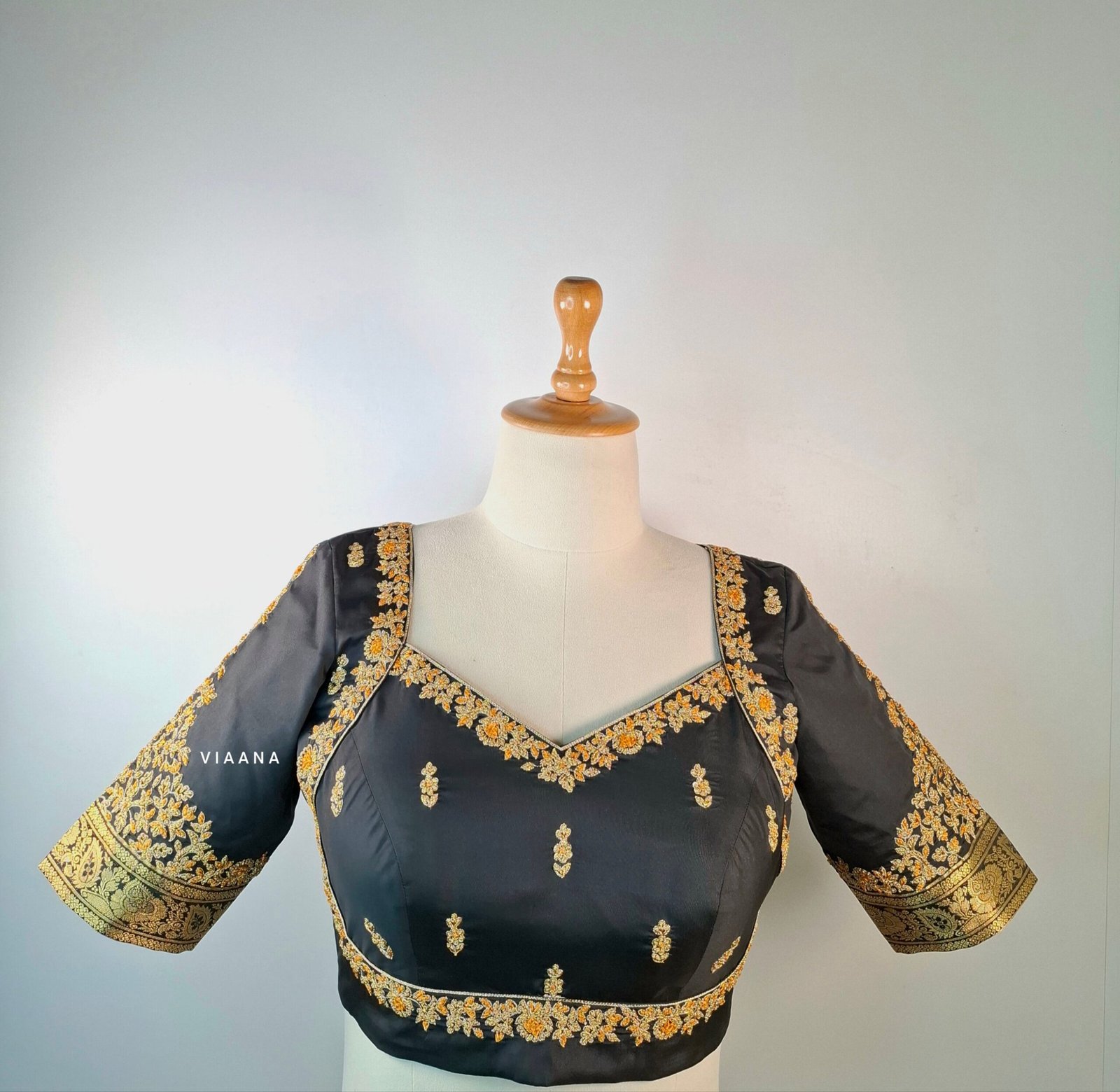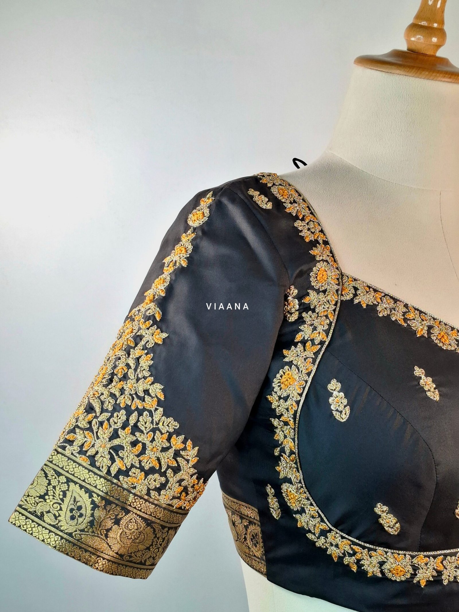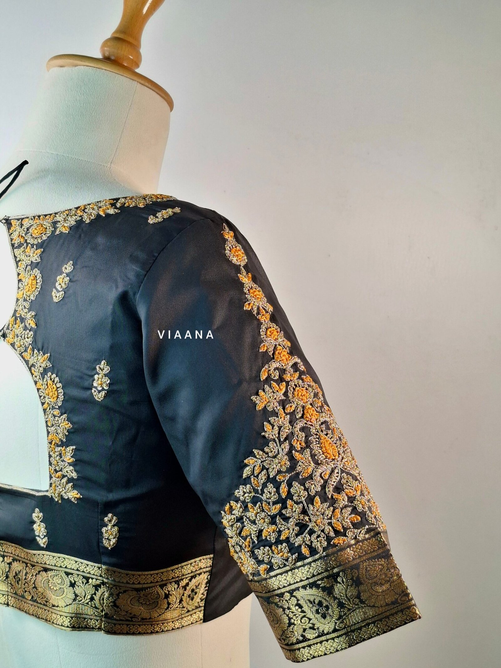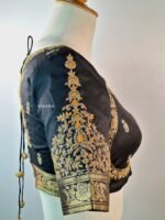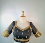 Be the first to review “Sabya cut blouse with zari and threadwork intricate embroidery with motif on sleeves” Cancel reply