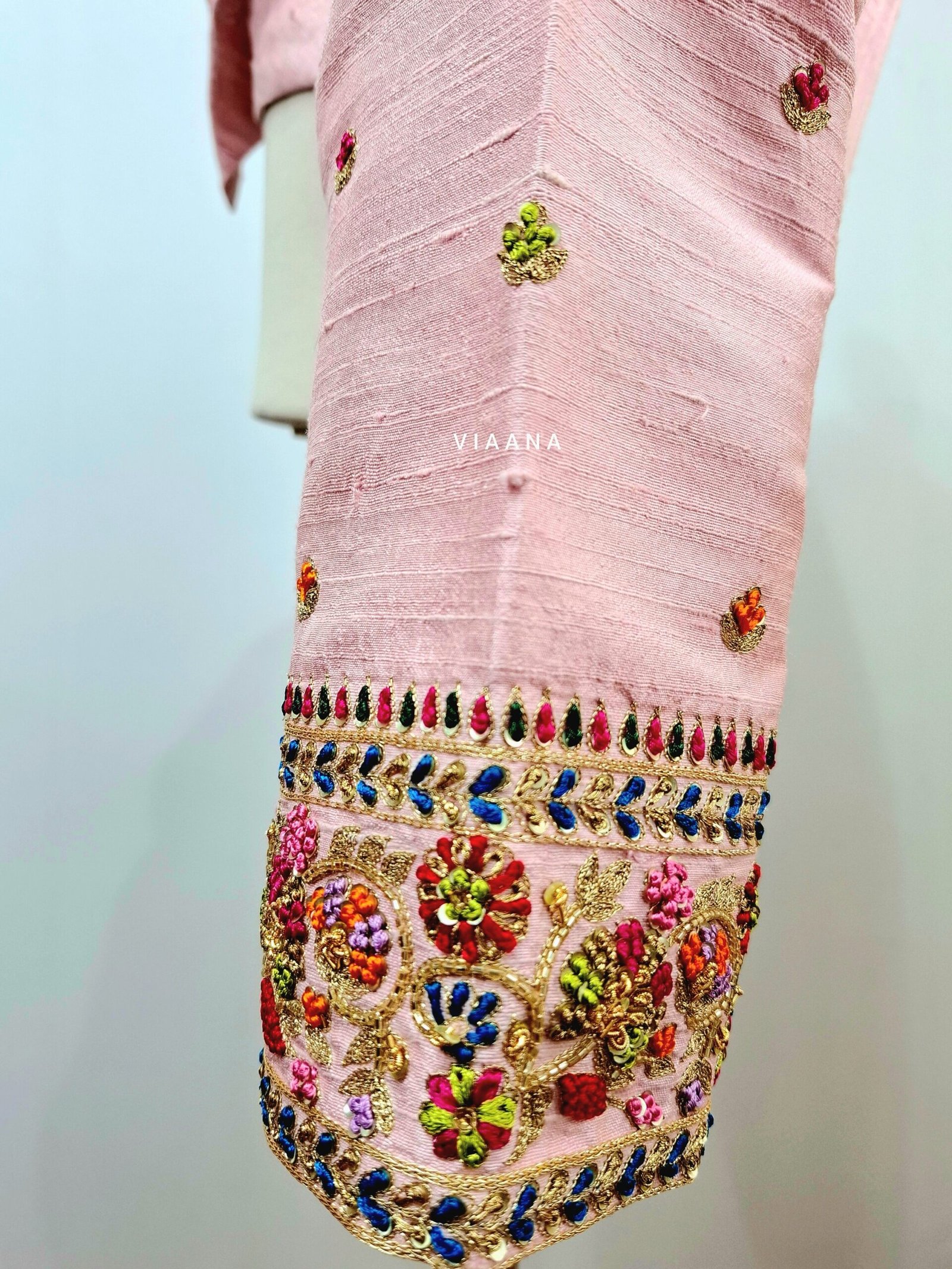 Multi-color knots floral design aari/maggam handwork blouse with full sleeves