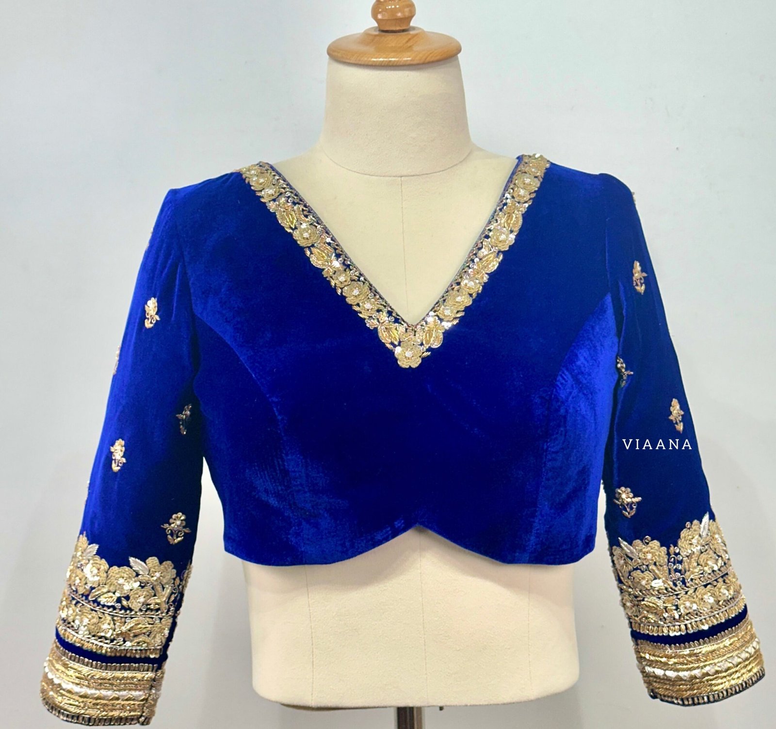 Stunning gold and zardozi floral intricate embroided blue velvet blouse